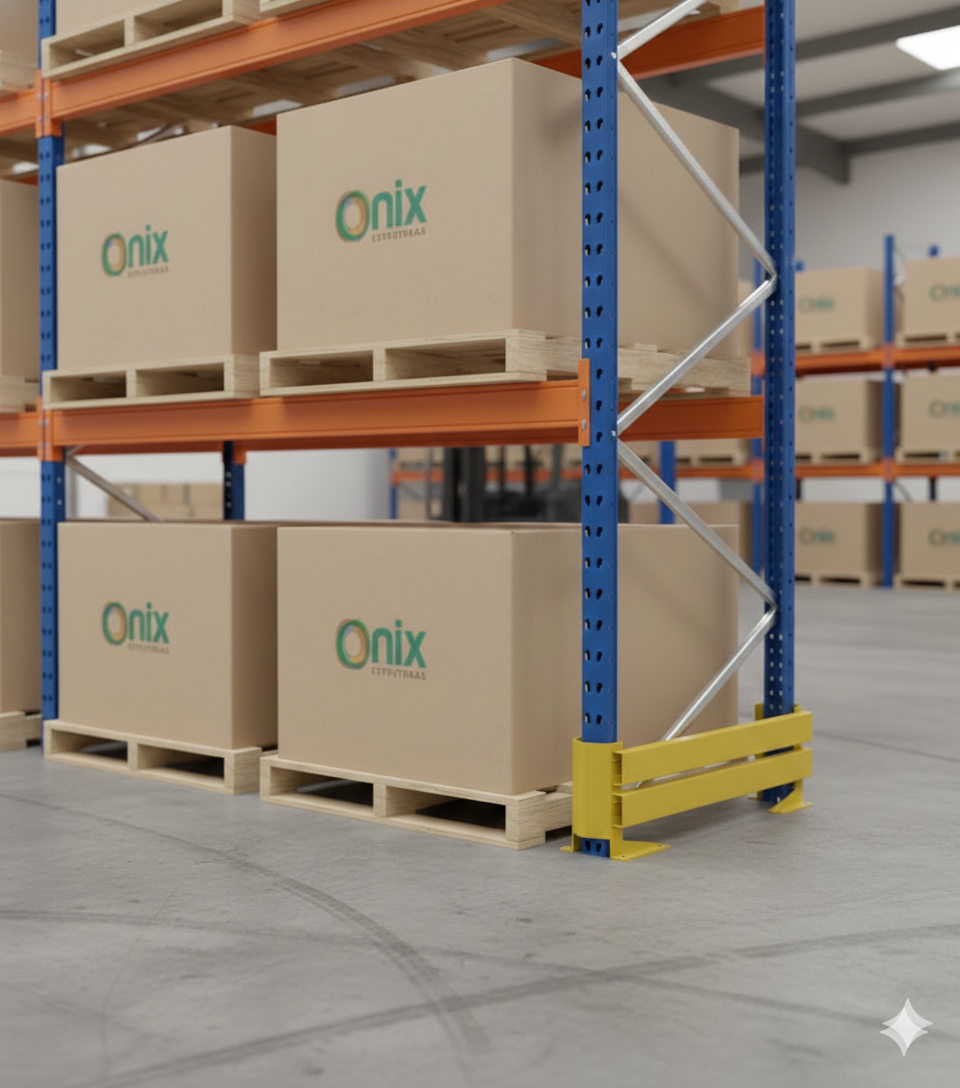 • Proteção reforçada: desenvolvido para áreas com alta movimentação, o conjunto minimiza danos causados por empilhadeiras e carrinhos, protegendo seu estoque e estrutura.